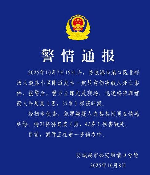 因男女情感糾紛殺害1人 廣西一男子被抓獲歸案 2025-10-09