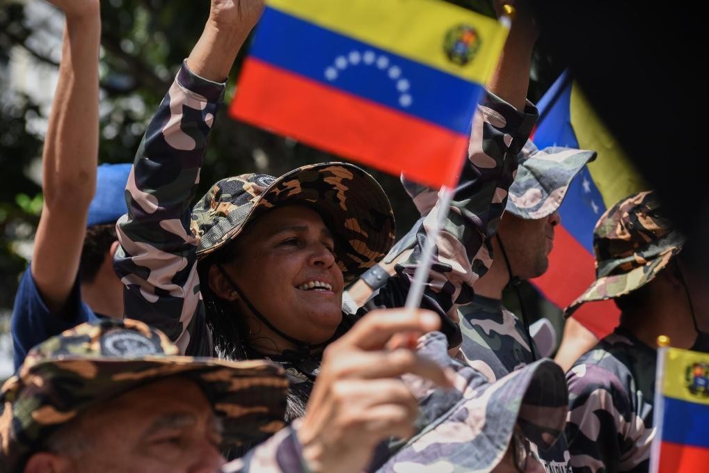 10月4日,在委內瑞拉首都加拉加斯的玻利瓦爾廣場,玻利瓦爾民兵組織成員參與全國特別軍事演習。新華社資料圖